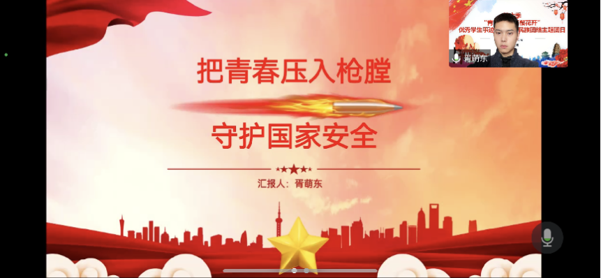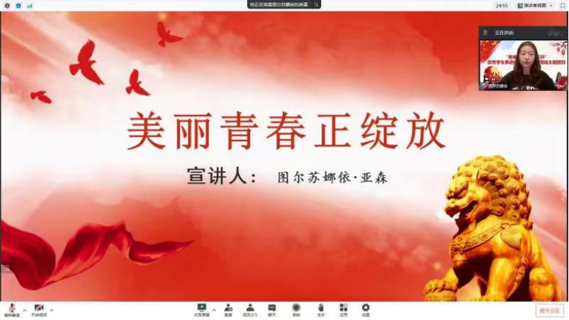 芒苏尔·麦提克热木为2019级财务管理团支部作《民族团结一家亲》主题报告,他提出,“要尽自己的力量努力把各民族同学紧紧凝聚在一起,新时代青年应该倍加珍惜来之不易的发展成果和团结稳定的大好局面,进一步铸牢中华民族共同体意识,守护民族团结一家亲的和谐景象”。退伍大学生士兵胥萌东与2021级建筑工程技术团支部同学分享了自己在部队的经历,他认为,“民族团结对于维护国家安全极为重要,青年大学生要用实际行动守护国家安全。”图尔苏娜依·亚森为2021级药学团支部同学讲述自己在国家各项帮扶政策下的幸福求学之路。来自2021级会计学二班的哈丽旦木·阿里木分享自己近期学习二十大报告的体会,立志做“有理想、敢担当、能吃苦、肯奋斗的新时代好青年”。在2021级社会工作、法学团支部线上活动中,穆耶赛尔·玉荪讲述了自己深入农村基层、担任农民夜校老师、宣传党的惠民政策的宝贵成长记忆,张一帆以切身经历分享对于“中国式浪漫”的理解:爱党爱国、民族团结、永不言败!